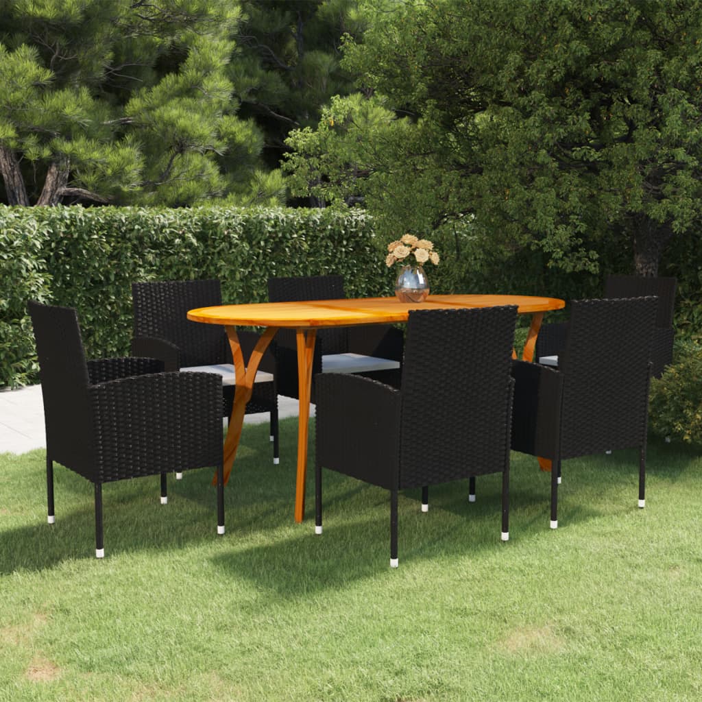 vidaXL Matgrupp för trädgården 7 delar svart