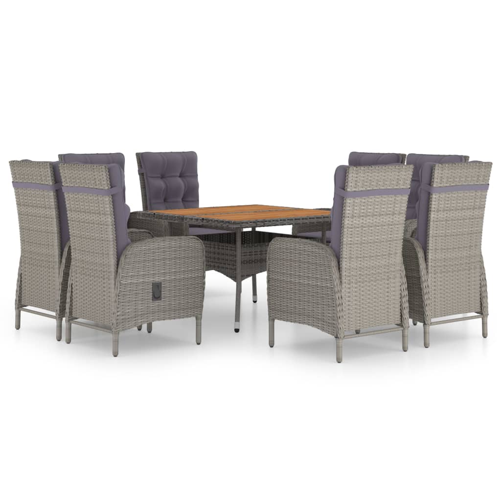 vidaXL Matgrupp för trädgården 9 delar konstrotting och akaciaträ grå