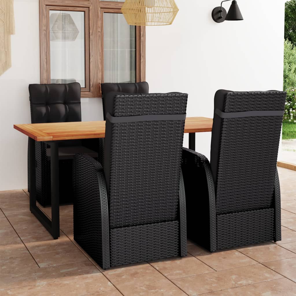 vidaXL Matgrupp för trädgården med dynor 5 delar konstrotting svart