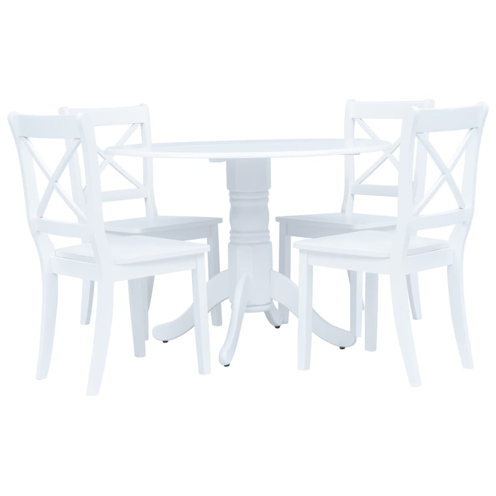 vidaXL Matgrupp i 5 delar massivt gummiträ vit