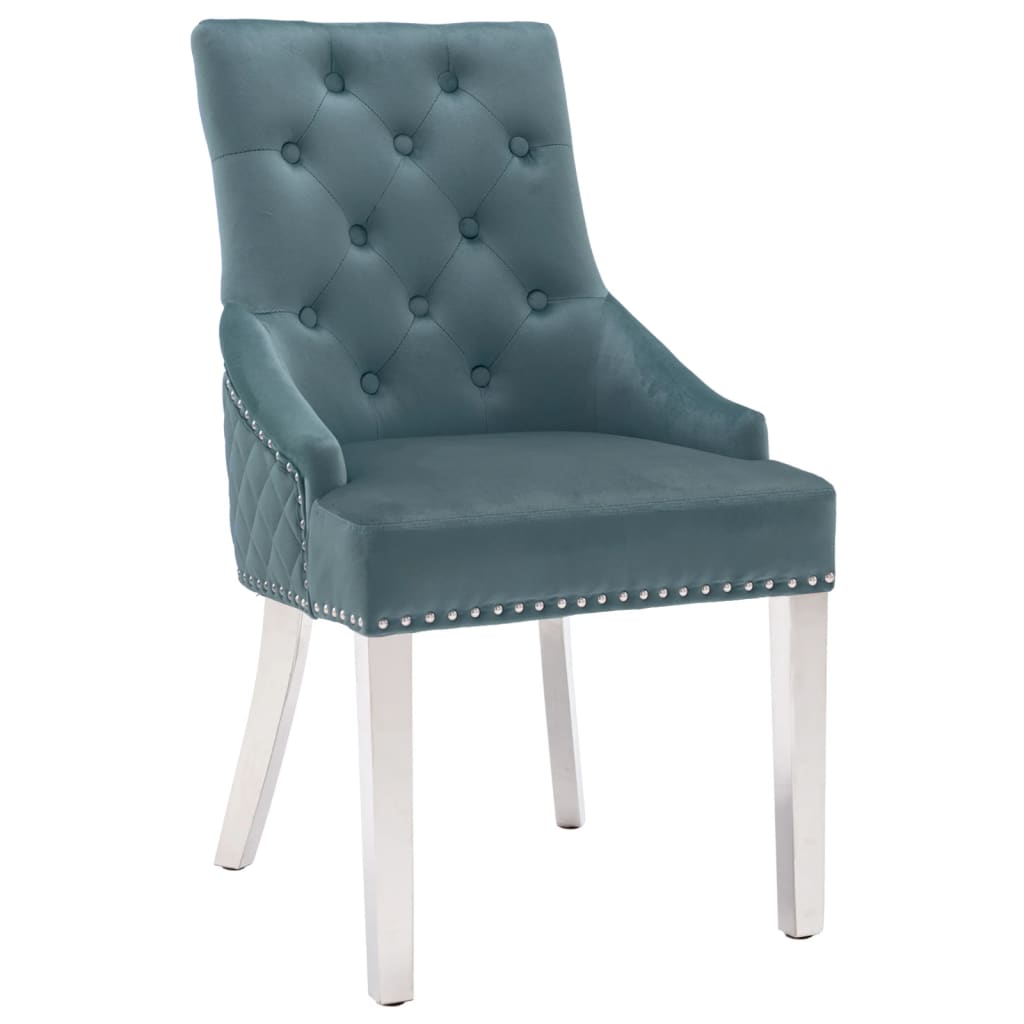 Lägg till en imponerande detalj i din inredning med denna matstol! Denna köksstol är klädd i mjuk sammet och vadderad med tjockt skum, vilket gör den bekväm att sitta i. Träramen och fötterna i rostfritt stål bidrar till hög stabilitet. Dessutom bidrar den dekorativa hängaren och knapparna till dess vackra design.