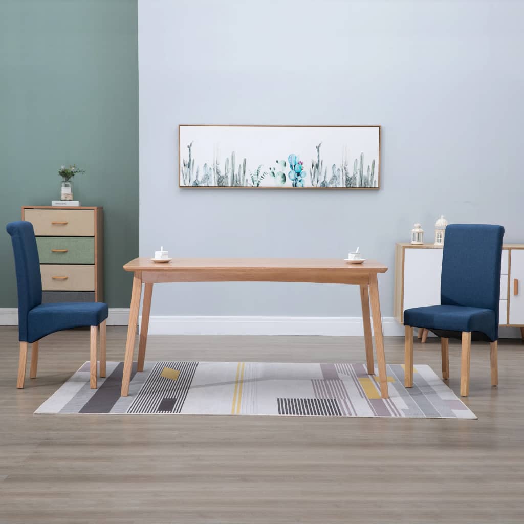 Tillsätt en modern känsla i ditt kök eller vardagsrum med våra mysiga och stadiga matstolar! Denna uppsättning om 2 matstolar i tyg är estetiskt vackert och ergonomiskt designad för att bli en mysig höjdpunkt i ditt hem. Den blir en bekväm plats för din familj att äta middag på i köket, eller läsa och vila i vardagsrummet. Tack vare dess sits och ryggstöd har vår stol en optimal sittkomfort. Dessutom är dess högkvalitativa träram och träben väldigt stabila och säkerställer en utmärkt hållbarhet. I leveransen ingår 2 matstolar.