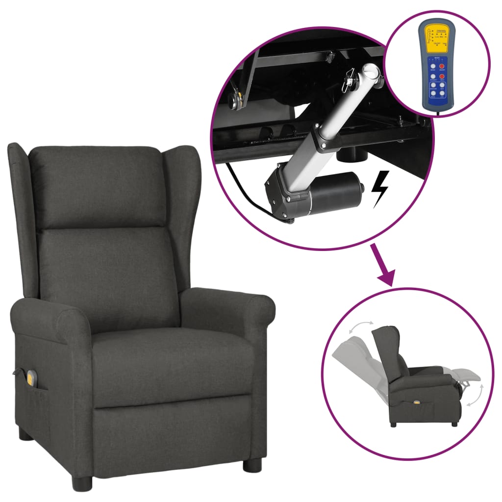vidaXL Öronlappsfåtölj med massage mörkgrå tyg
