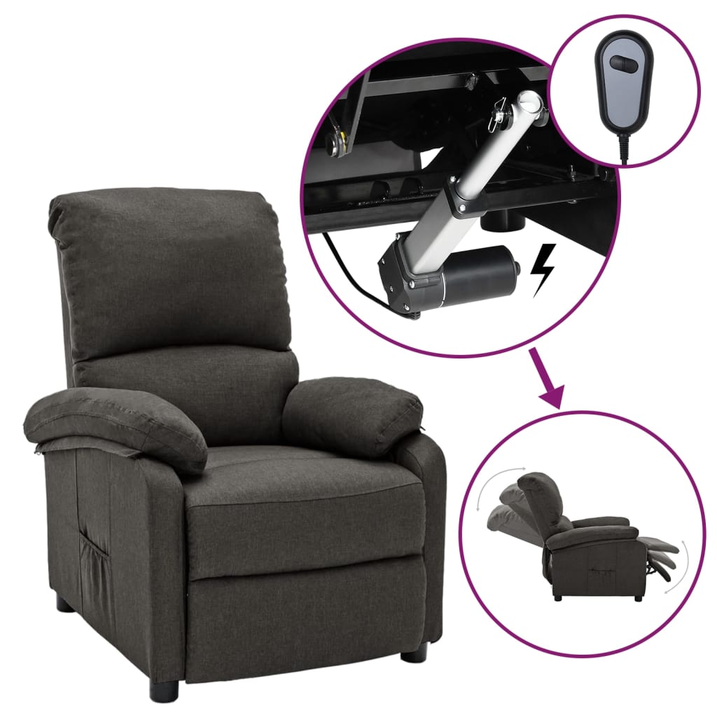 vidaXL Reclinerfåtölj med uppresningshjälp mörkgrå tyg