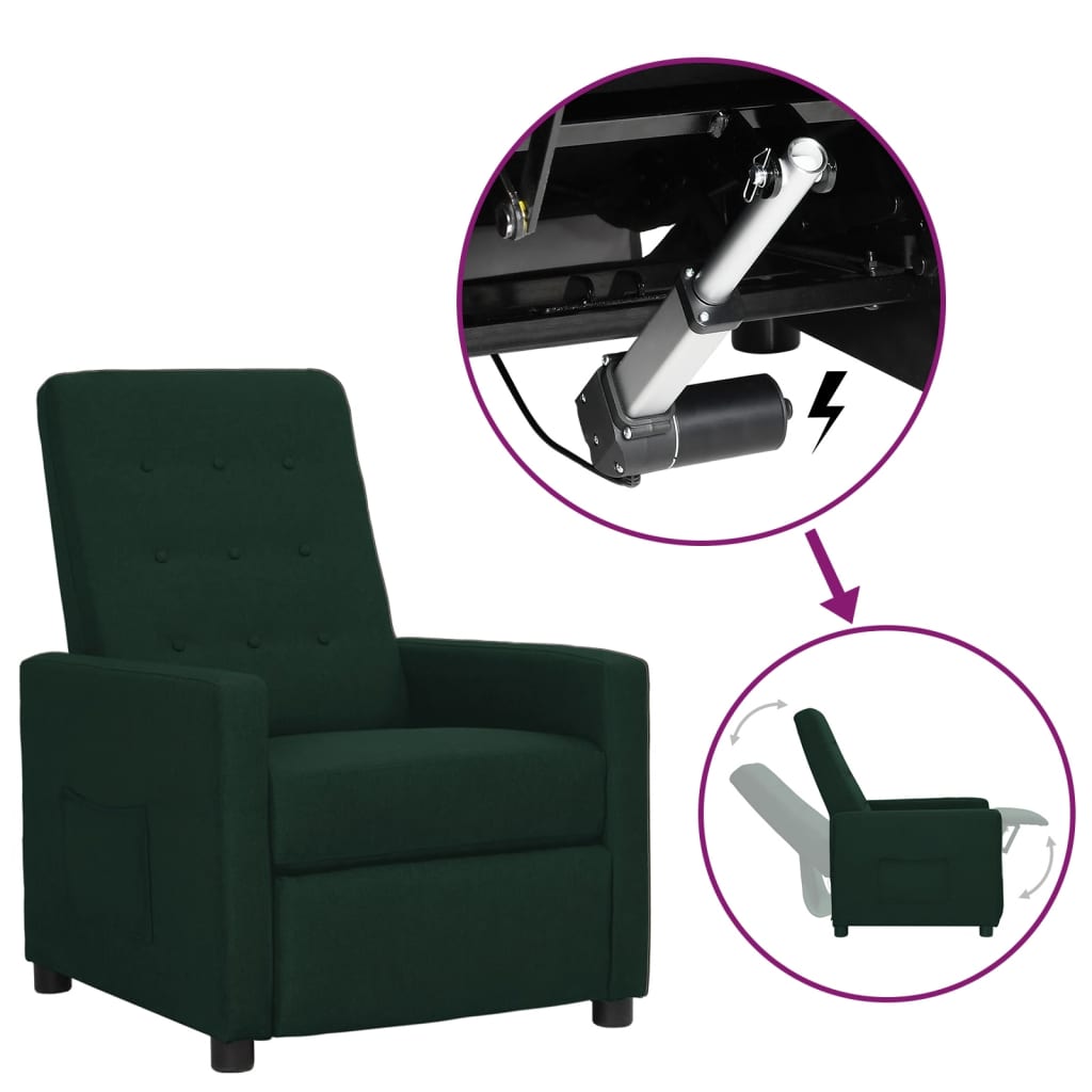 vidaXL Reclinerfåtölj med uppresningshjälp mörkgrön tyg