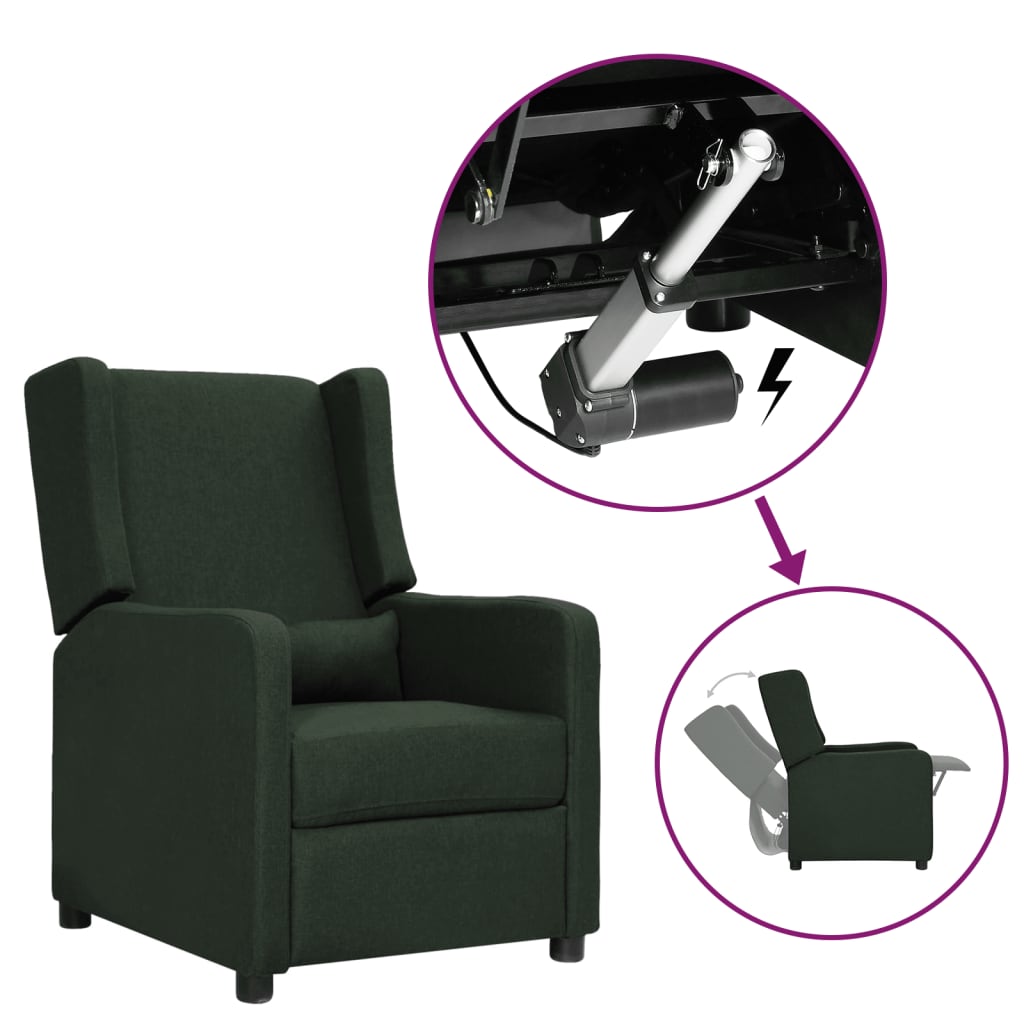 vidaXL Reclinerfåtölj med uppresningshjälp mörkgrön tyg