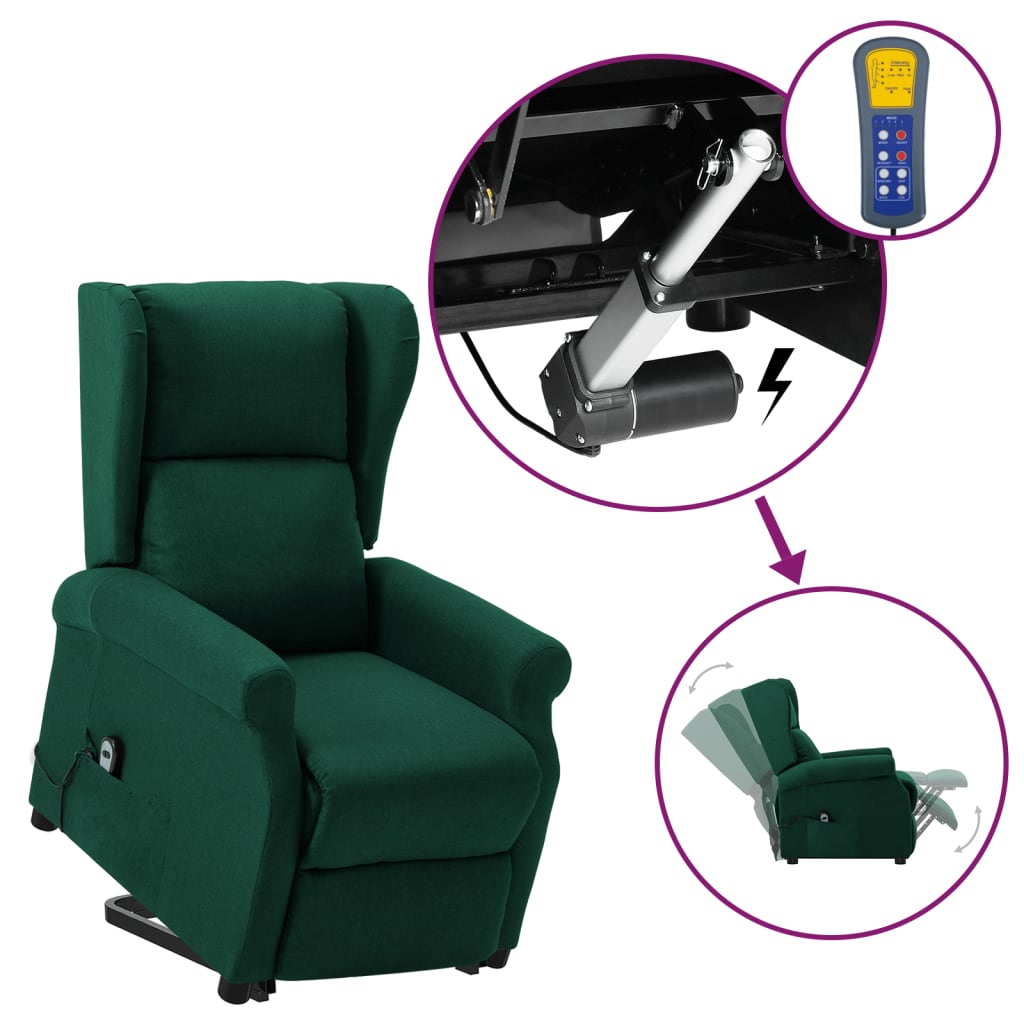 vidaXL Reclinerfåtölj med uppresningshjälp mörkgrön tyg