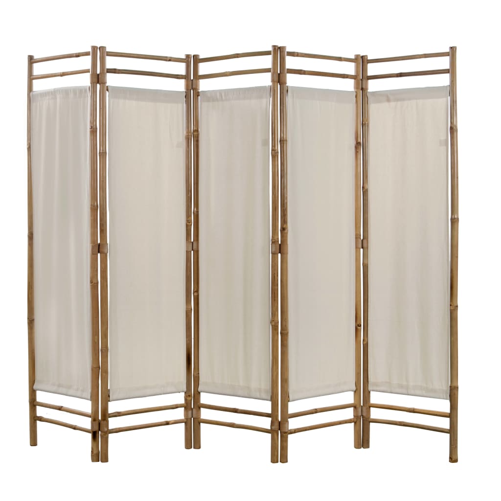 Denna rumsavdelare är 200 cm bred och 160 cm hög, den är optimal för att skapa avskildhet eller för att dela upp en del av rummet. Den blir ett praktiskt såväl som dekorativt tillskott till ditt badrum, sovrum eller vardagsrum. Rumsavdelaren har en ram i lätt bambu som tillsätter en naturlig känsla i din inredning och är täckt med hållbar kanvas. Avdelaren kan enkelt fällas ihop och sparar plats när den inte används.