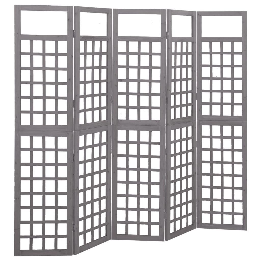 vidaXL Rumsavdelare/Spaljé 5 paneler massiv furu grå 201,5×180 cm