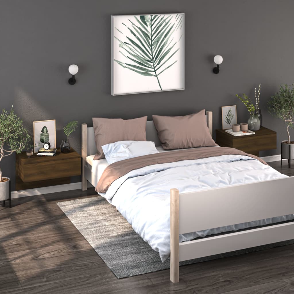 vidaXL Sängbord väggmonterade 2 st brun ek konstruerat trä