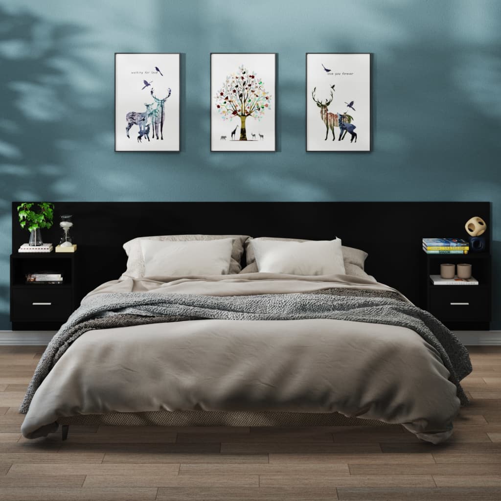 vidaXL Sängbord väggmonterade 2 st svart konstruerat trä