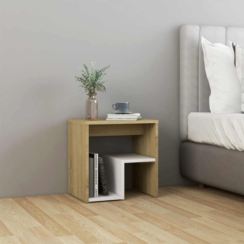 vidaXL Sängbord vit och sonoma-ek 40x30x40 cm spånskiva