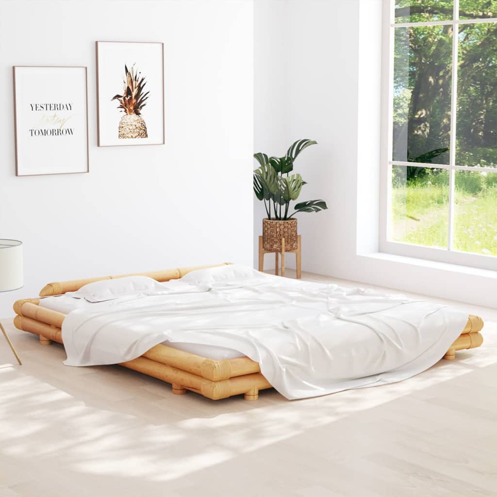 Det etniska utseendet och den vackra bambu-sängramen i vintagestil kommer absolut bli ett blickfång i ditt sovrum! Premiummaterial: Denna sängram är tillverkad av hållbar bambu, som är miljövänligt och hållbart. Materialets färg är mycket varaktigt och förhindrar att sängen spricker och deformeras.Bekväm yta: Sängbasen har en bekväm sovyta som är helt gjord av bambu, du kan njuta av en fantastisk sovupplevelse varje natt på den här sängen!Rustik stil: Bambuändarna är klädda med naturlig rotting som ger en touch av rustik stil till din sovrumsinredning.Robusta lameller: De robusta lamellerna erbjuder det stöd och den komfort som behövs. Observera:Vid leverans ingår endast sängstommen. Madrass ingår ej. Du kan titta i vår shop för matchande madrasser.