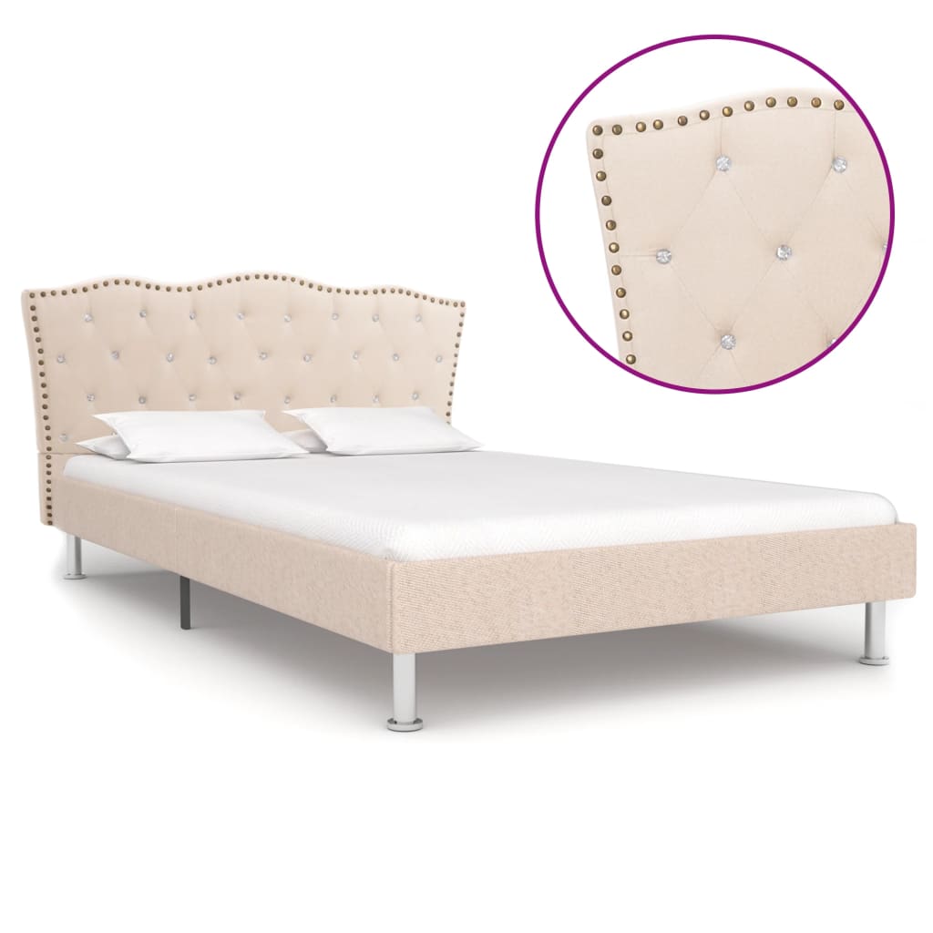 Denna klassiska sängram kommer att bli fokuspunkten i sovrummet. Denna sängram utmärks av en diskret men elegant design som bidrar till en elegant charm i ditt sovrum. Sängramen är tillverkad i trä och stål och är väldigt stabil och hållbar. Stålbenen bidrar till sängens stabilitet. Sängen är dessutom klädd i slitstarkt tyg, utstrålar en inbjudande känsla och är lätt att rengöra. Sängramen är lämplig för en madrass på 120 x 200 cm. Vänligen observera att endast sängramen ingår; en madrass ingår ej. Sängen är lätt att montera.