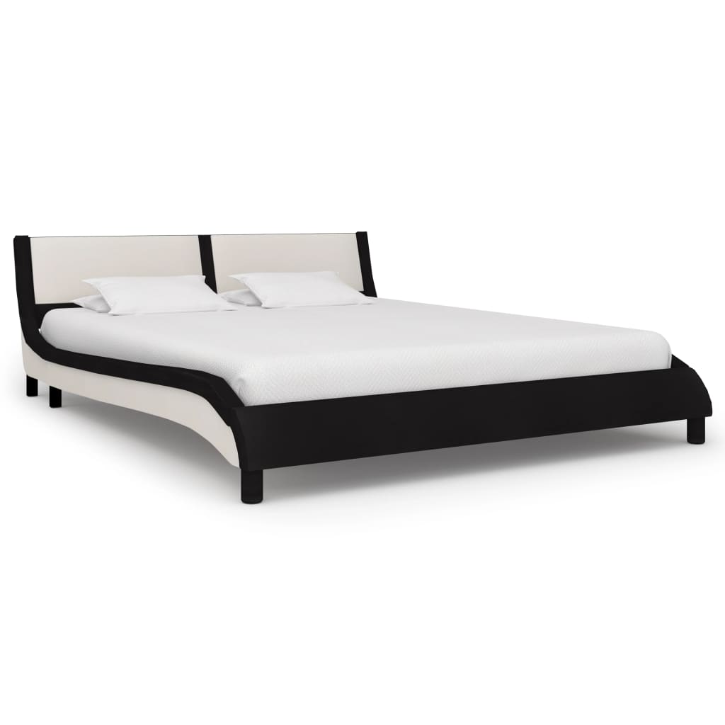 vidaXL Sängram svart och vit konstläder 160×200 cm