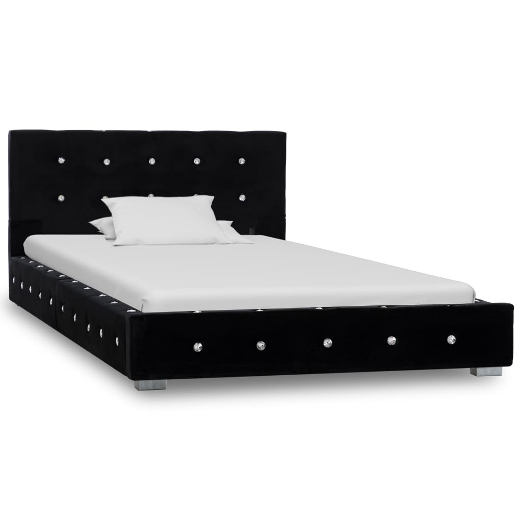 Denna klassiska sängram kommer att bli fokuspunkten i sovrummet. Denna sängram utmärks av en diskret men elegant design som bidrar till en elegant charm i ditt sovrum. Sängramen är tillverkad av pulverlackerat järn, plywood och MDF och är väldigt stabil och hållbar. De pulverlackerade stålbenen bidrar till sängens hållbarhet. Sängen är dessutom klädd i hållbar sammet, utstrålar en inbjudande känsla och är lätt att rengöra. Sängramen är lämplig för en madrass på 90 x 200 cm. Vänligen observera att endast sängramen ingår; en madrass ingår ej. Sängen är lätt att montera.