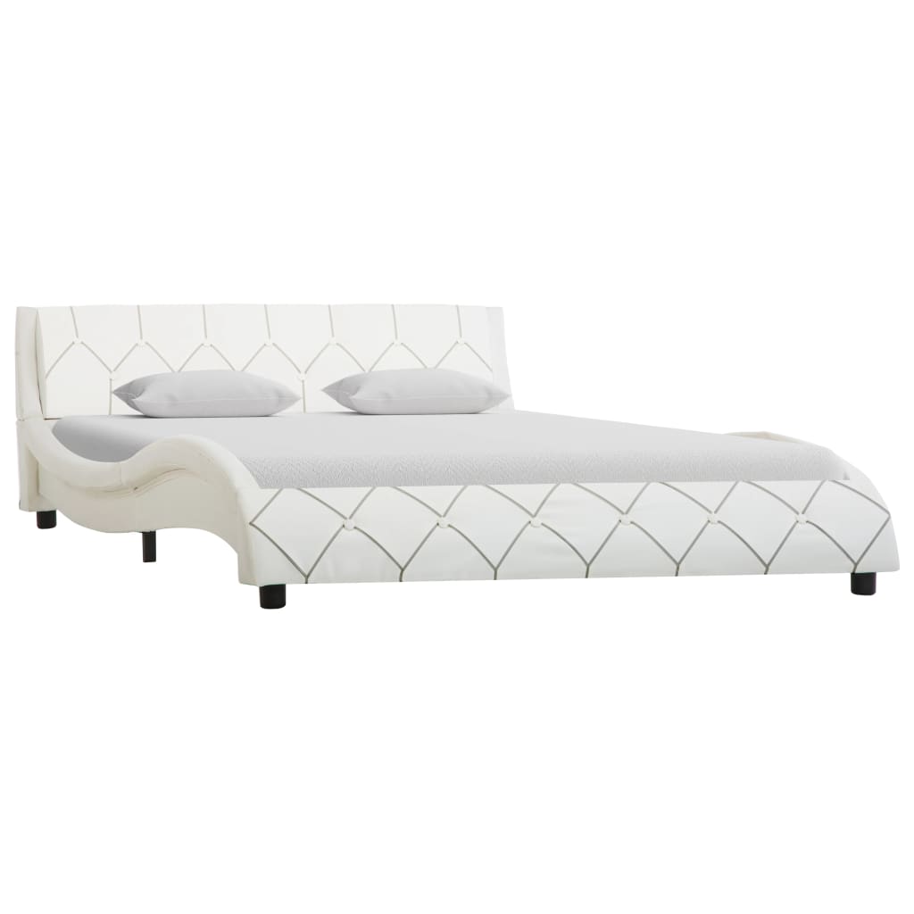 Skapa en modern känsla i ditt sovrum med vår sängram av konstläder! Sängramen utmärks av en enkel men tidlös vågdesign och skapar en känsla av elegant charm i ditt sovrum. Den pulverlackerade stålramen och ribbotten bidrar till sängens stadighet och hållbarhet. Sängen är klädd i slitstarkt och lättskött konstläder och utstrålar en inbjudande känsla. Den beklädda sängen passar en madrass på 120 x 200 cm. Observera att leveransen endast omfattar en sängram; en madrass ingår inte. Sängen är enkel att montera. Du kan hitta en matchande madrass i vår butik.