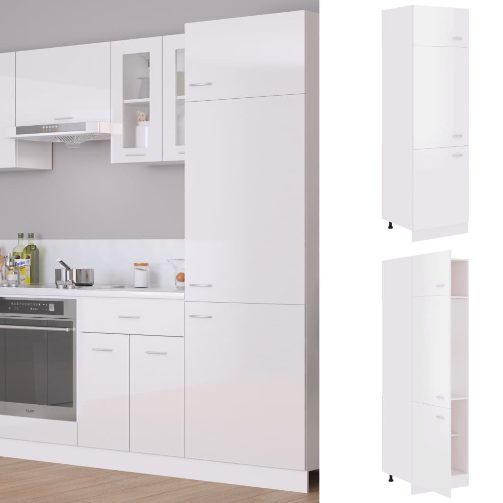 Detta skåp för kylskåp med enkel design, optimerar ditt köksutrymme och har om förvaringsutrymme för dina personliga tillhörigheter! Förvaringsskåpet är hållbart och funktionellt och håller ditt kök mer organiserat. Skåpet har fyra hyllor med tillräckligt utrymme för förvaring av skålar, tallrikar, kastruller och annan köksutrustning. Det finns tre dörrar utanför hyllorna för att hålla lagrade föremål rena. Dessutom är det här skåpet lätt att rengöra med en fuktig trasa.