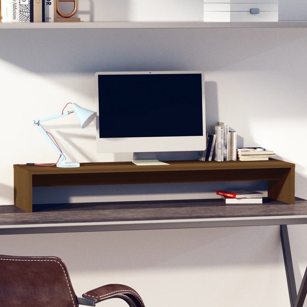 Du kan nu höja dina bildskärmar högre med detta bildskärmsstativ. Den eleganta designen gör den till ett praktiskt och dekorativt tillskott till ditt arbetsområde. Premium material: Massivt furuträ är ett vackert naturmaterial. Behandla ytan med olja, vax eller lack för en starkare yta och enkel rengöring. Furuträ har raka fibrer, och knutarna ger materialet sin signatur, rustikt utseende.Lagringsfunktion: Förvaringshyllan under stället rymmer tangentbord, DVD-spelare, spelkonsol, streamingenhet, mottagare, medieenheter, bärbara datorer, pennor och liknande föremål.Stressreducerande funktion: Denna skrivbordshylla i trä kan användas för att höja din stationära bildskärm och andra multimediaenheter. Att höja skärmen minskar belastningen på nacke och rygg.