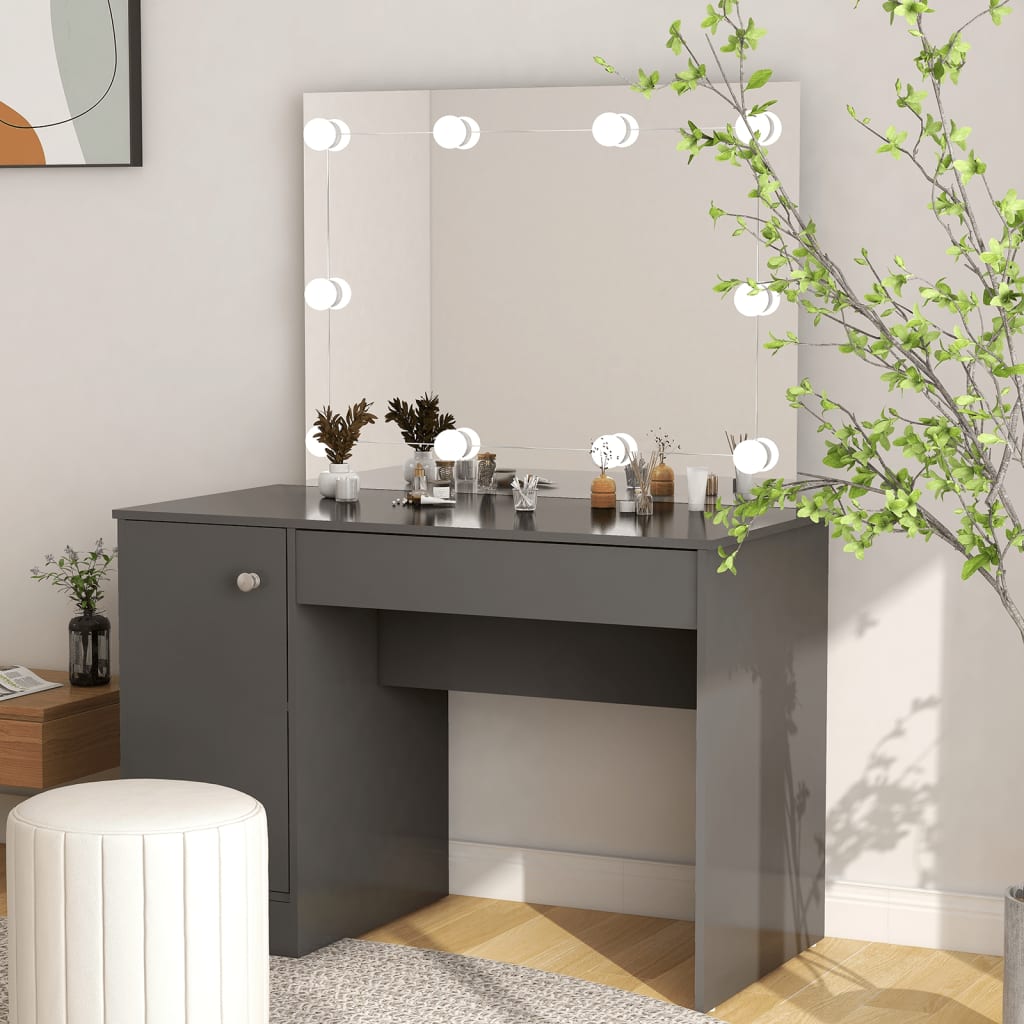 vidaXL Sminkbord med LED-belysning 110x55x145 cm MDF grå