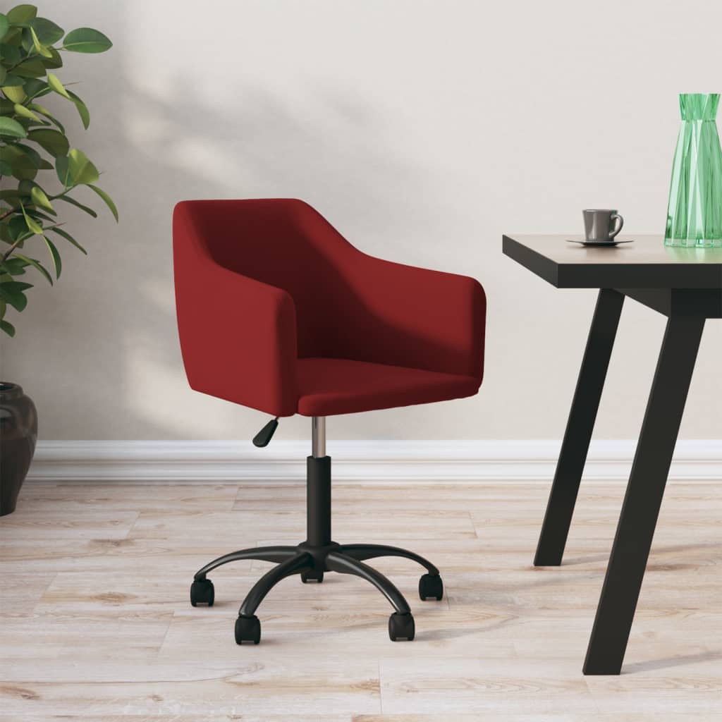 Denna snurrbara kontorsstol har en elegant och modern design och blir ett praktiskt tillskott i ditt hem. Den här snurrbara stolen garanterar högsta sittkomfort med sitt mjuka sammet. Metallramen bidrar till hög robusthet och stabilitet. Tack vare gaslyftmekanismen är matstolen justerbar i höjdled enligt din bekvämlighet. Dessutom kan stolen snurra 360 grader med utmärkt flexibilitet, och hjulen gör att du kan röra dig fritt i olika riktningar.