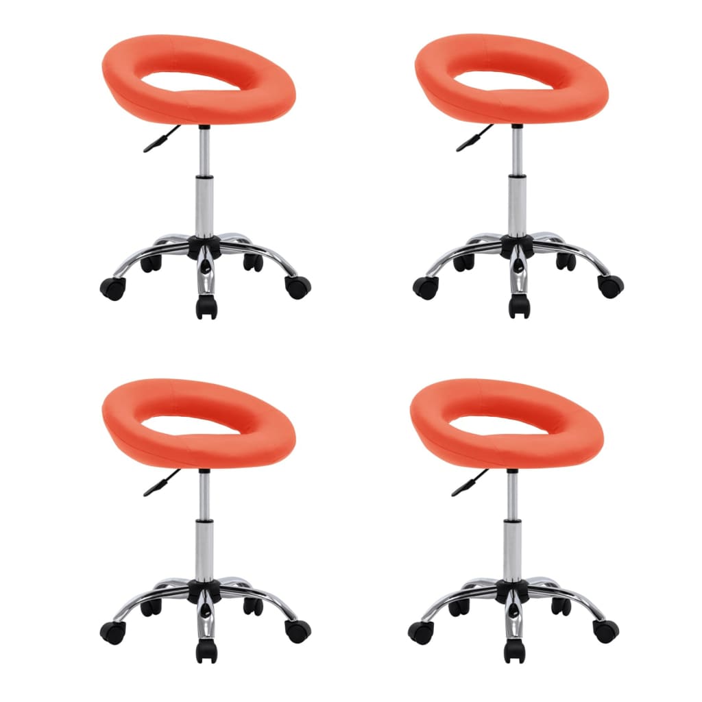 Dessa snurrbara matstolar har en elegant och modern design och blir ett praktiskt tillskott i din inredning. Med sin lättskötta klädsel i konstläder kommer denna stol säkerligen att ge dig optimal sittkomfort. Du kan njuta av din middag, läsa och vila. Tack vare gasfjädermekanismen är sitsen justerbar i höjdled. Stolen kan snurra 360 grader och ger stor rörelsefrihet med sina hjul. Dessutom är denna snurrstol i krombehandlat stål, vilket ger extra stabilitet.