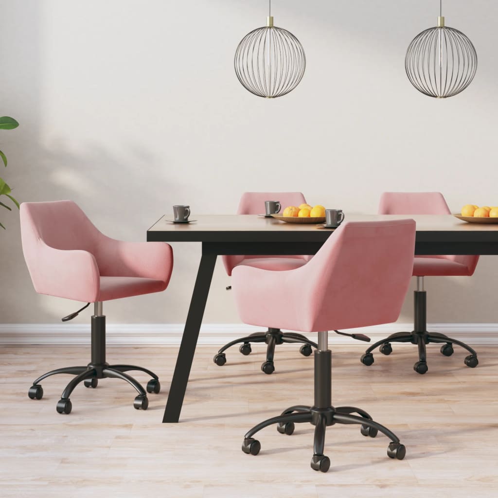 vidaXL Snurrbara matstolar 4 st rosa sammet