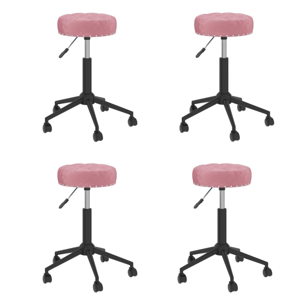 Dessa snurrbara matstolar har en elegant och modern design och blir ett praktiskt tillskott i din inredning. Med sin mjuka sammetsklädsel kommer denna stol säkerligen att ge dig optimal sittkomfort. Du kan njuta av din middag, läsa och vila. Tack vare gasfjädern är sitsen justerbar i höjdled. Stolen kan snurra 360 grader och ger stor rörelsefrihet med sina hjul. Dessutom är denna snurrstol i pulverlackerad stål, vilket ger extra stabilitet.