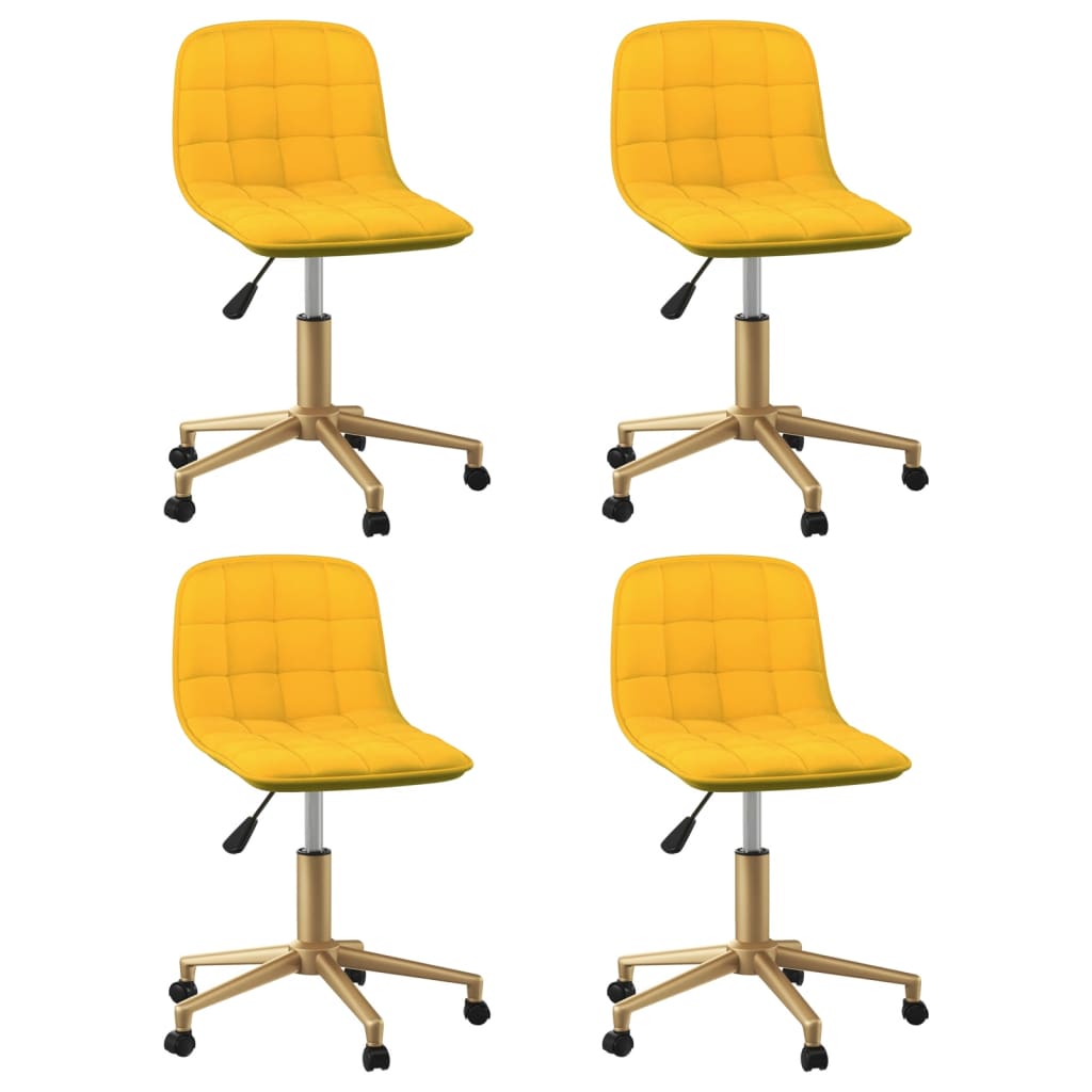 Dessa snurrbara matstolar har en elegant och modern design och blir ett praktiskt tillskott i din inredning. Stolen är klädd i sammet för optimal sittkomfort. Du kan njuta av din middagen, läsa och vila i vardagsrummet. Den pulverlackerade stålramen bidrar till hög robusthet och stabilitet. Tack vare gaslyftmekanismen är den svängbara stolen justerbar i höjdled enligt din bekvämlighet. Dessutom kan sätet svänga 360 grader för stor flexibilitet och är bekvämt att flytta runt med rullande hjul.