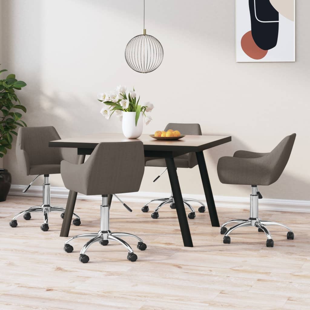 Dessa snurrbara matstolar har en elegant och modern design och blir ett praktiskt tillskott i din inredning. Metallramen och plywoodsitsen säkerställer hög stabilitet. Denna köksstol är klädd i tyg och är mycket bekväm att sitta i. Du kan avnjuta din middag, läsa eller slappa i vardagsrummet. Tack vare gasfjädern kan matstolen justeras i höjd. Dessutom kan den snurra 360 grader för hög flexibilitet och den kan lätt flyttas runt tack vare hjulen.
