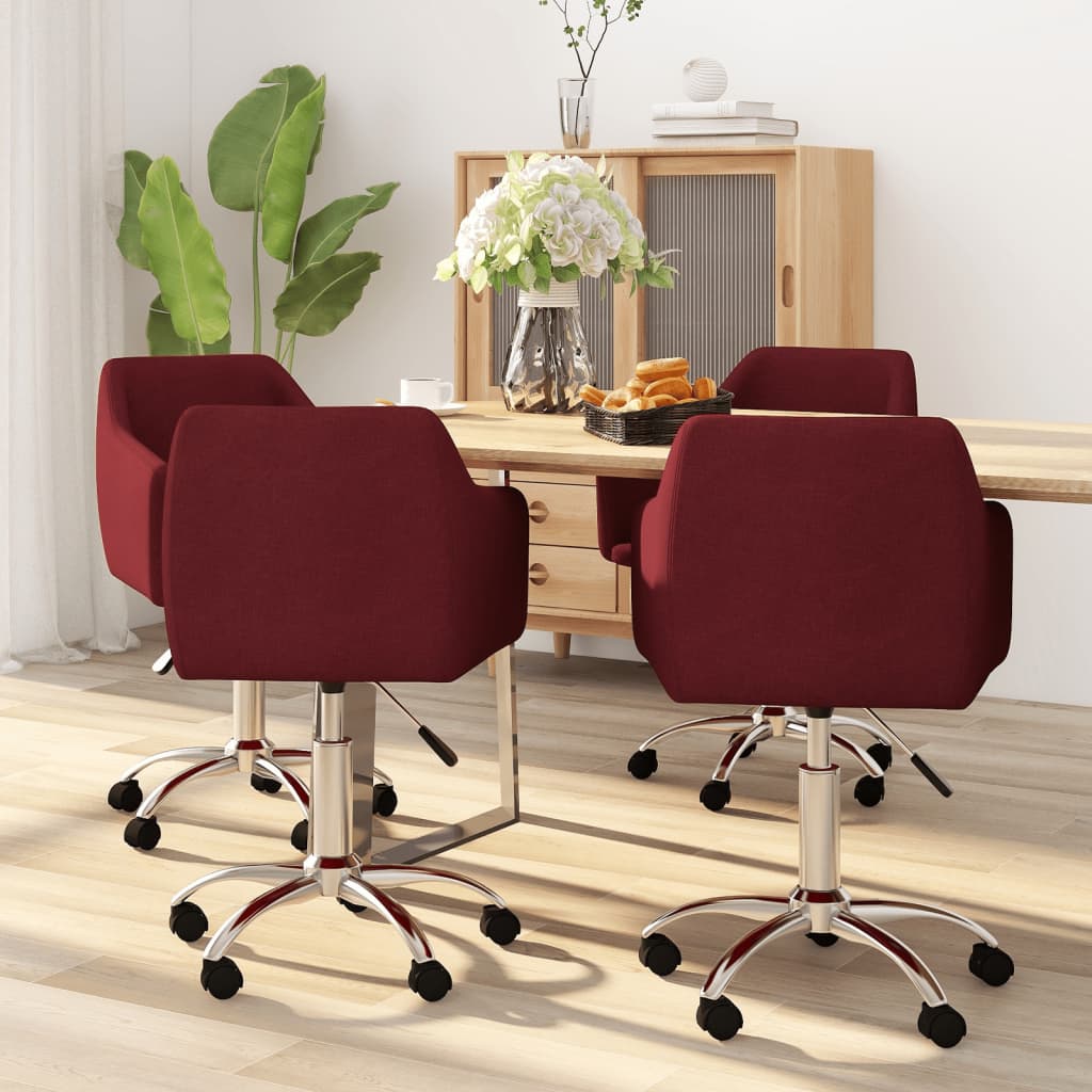 vidaXL Snurrbara matstolar 4 st vinröd tyg