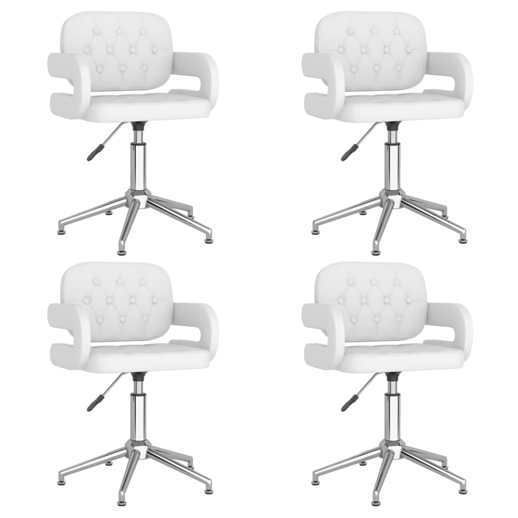 Dessa snurrbara matstolar har en modern design och blir ett praktiskt och modernt tillskott till ditt vardagsrum. Matstolarna är klädda i mjuk konstläder och är tjockt stoppade, vilket gör dem mycket bekväma. Ramen är i stål som ger stadighet och hållbarhet. Tack vare gasfjädermekanismen kan höjden justeras efter behov. Dessutom kan stolarna snurra 360 grader för utmärkt rörelsefrihet.