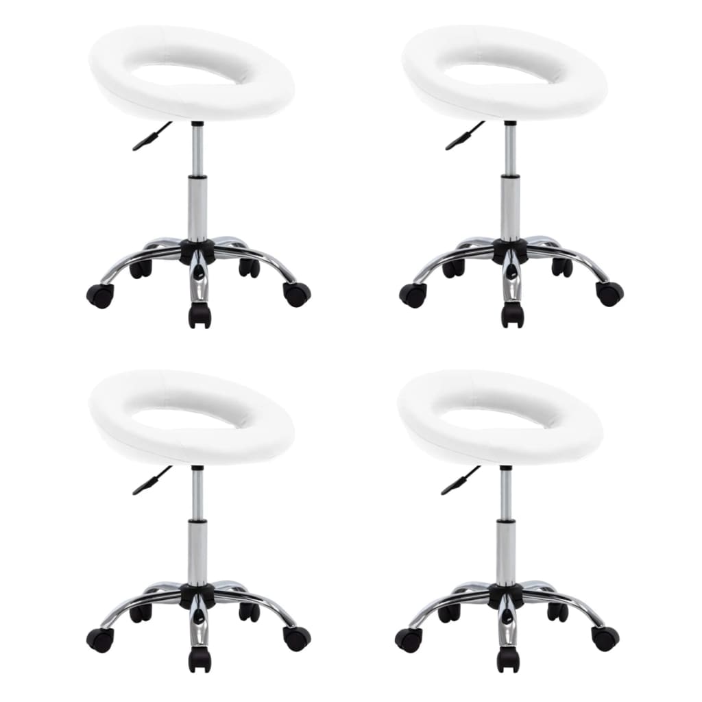 Dessa snurrbara matstolar har en elegant och modern design och blir ett praktiskt tillskott i din inredning. Med sin lättskötta klädsel i konstläder kommer denna stol säkerligen att ge dig optimal sittkomfort. Du kan njuta av din middag, läsa och vila. Tack vare gasfjädermekanismen är sitsen justerbar i höjdled. Stolen kan snurra 360 grader och ger stor rörelsefrihet med sina hjul. Dessutom är denna snurrstol i krombehandlat stål, vilket ger extra stabilitet.