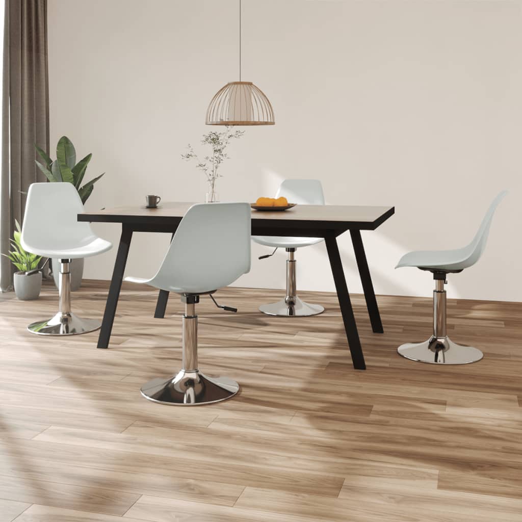 Få en imponerande känsla din inredning med dessa minimalistiska snurrbara matstolar! Dessa stolar, gjorda av polypropen, är enkla att rengöra med en fuktig trasa. Den starka metallramen bidrar till dess robusthet, hållbarhet och estetiska utseende. Tack vare dess höjdjusterbara design kan du enkelt justera sitsen som du vill. Tillsammans med ett ergonomiskt böjt ryggstöd säkerställer stolen högsta sittkomfort.