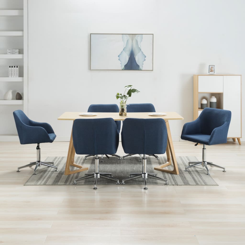 vidaXL Snurrbara matstolar 6 st blå tyg