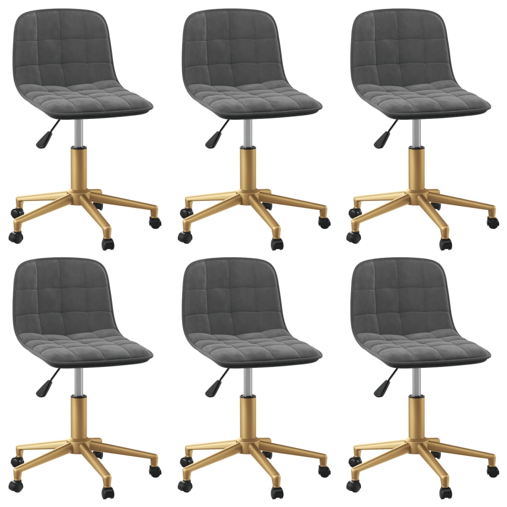 vidaXL Snurrbara matstolar 6 st mörkgrå sammet