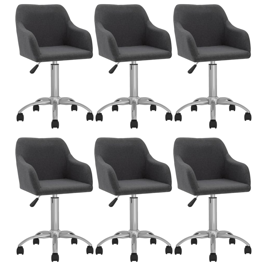 vidaXL Snurrbara matstolar 6 st mörkgrå tyg