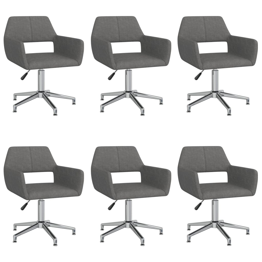 vidaXL Snurrbara matstolar 6 st mörkgrå tyg