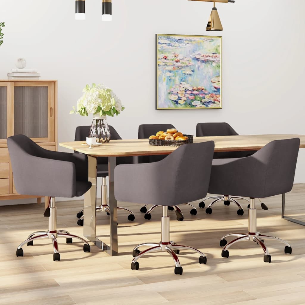 Dessa snurrbara matstolar har en elegant och modern design och blir ett praktiskt tillskott i din inredning. Dessa snurrbara stolar garanterar högsta sittkomfort med sitt mjuka tyg. Den kromade metallramen bidrar till hög robusthet och stabilitet. Tack vare gaslyftmekanismen är matstolarna justerbara i höjdled enligt din bekvämlighet. Dessutom kan stolarna snurra 360 grader med utmärkt flexibilitet, och hjulen gör att du kan röra dig fritt i olika riktningar.
