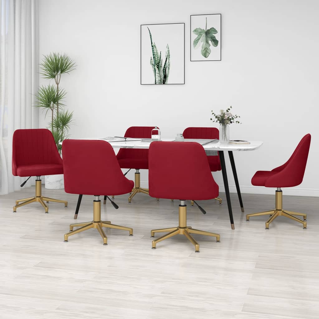 vidaXL Snurrbara matstolar 6 st vinröd sammet