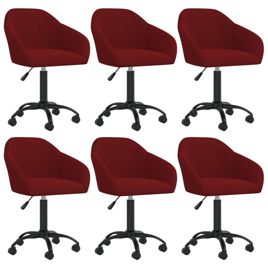 vidaXL Snurrbara matstolar 6 st vinröd sammet