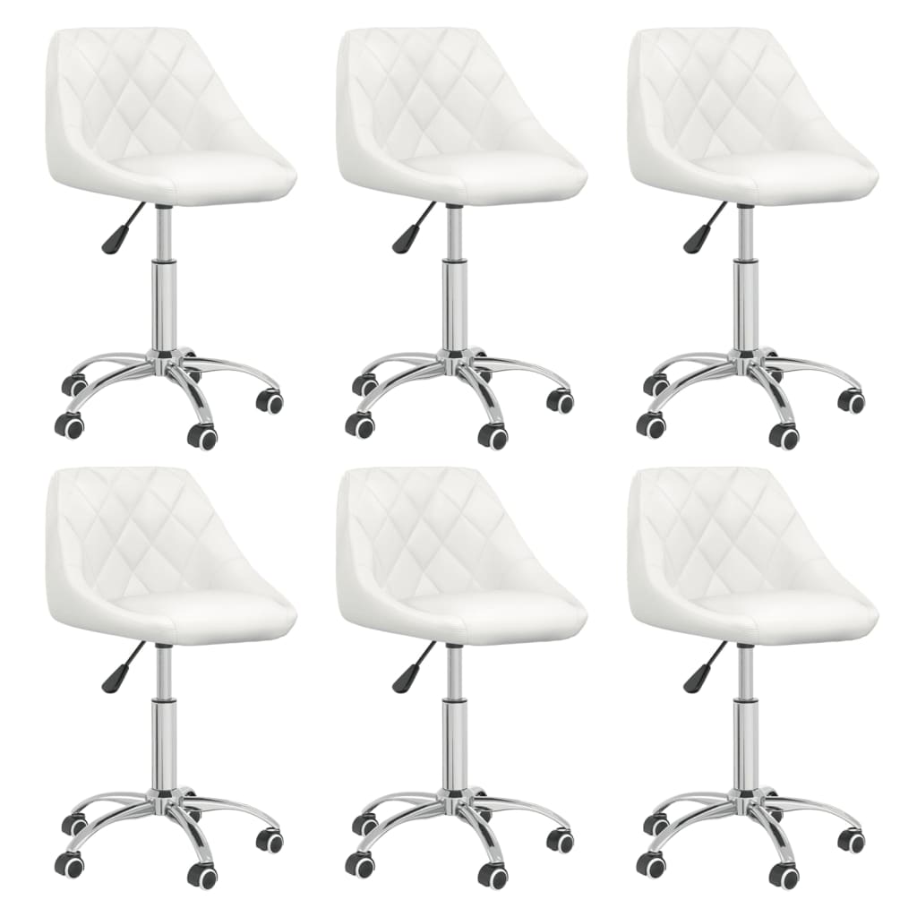 Dessa trendiga snurrbara matstolar blir ett modernt tillskott i din heminredning. Dessa stolar är klädda i mjukt konstläder, vilket ger optimal sittkomfort. Den kromade stålramen bidrar till hög stadighet. Tack vare gasfjädermekanismen kan de även justeras i höjdled, vilket gör dem perfekta på matplatsen. Dessutom kan de snurra 360 grader, vilket ger hög flexibilitet. Rullhjulen gör att du kan röra dig fritt.