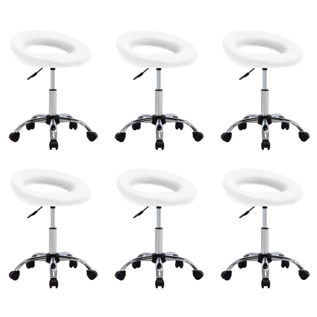 Dessa snurrbara matstolar har en elegant och modern design och blir ett praktiskt tillskott i din inredning. Med sin lättskötta klädsel i konstläder kommer denna stol säkerligen att ge dig optimal sittkomfort. Du kan njuta av din middag, läsa och vila. Tack vare gasfjädermekanismen är sitsen justerbar i höjdled. Stolen kan snurra 360 grader och ger stor rörelsefrihet med sina hjul. Dessutom är denna snurrstol i krombehandlat stål, vilket ger extra stabilitet.
