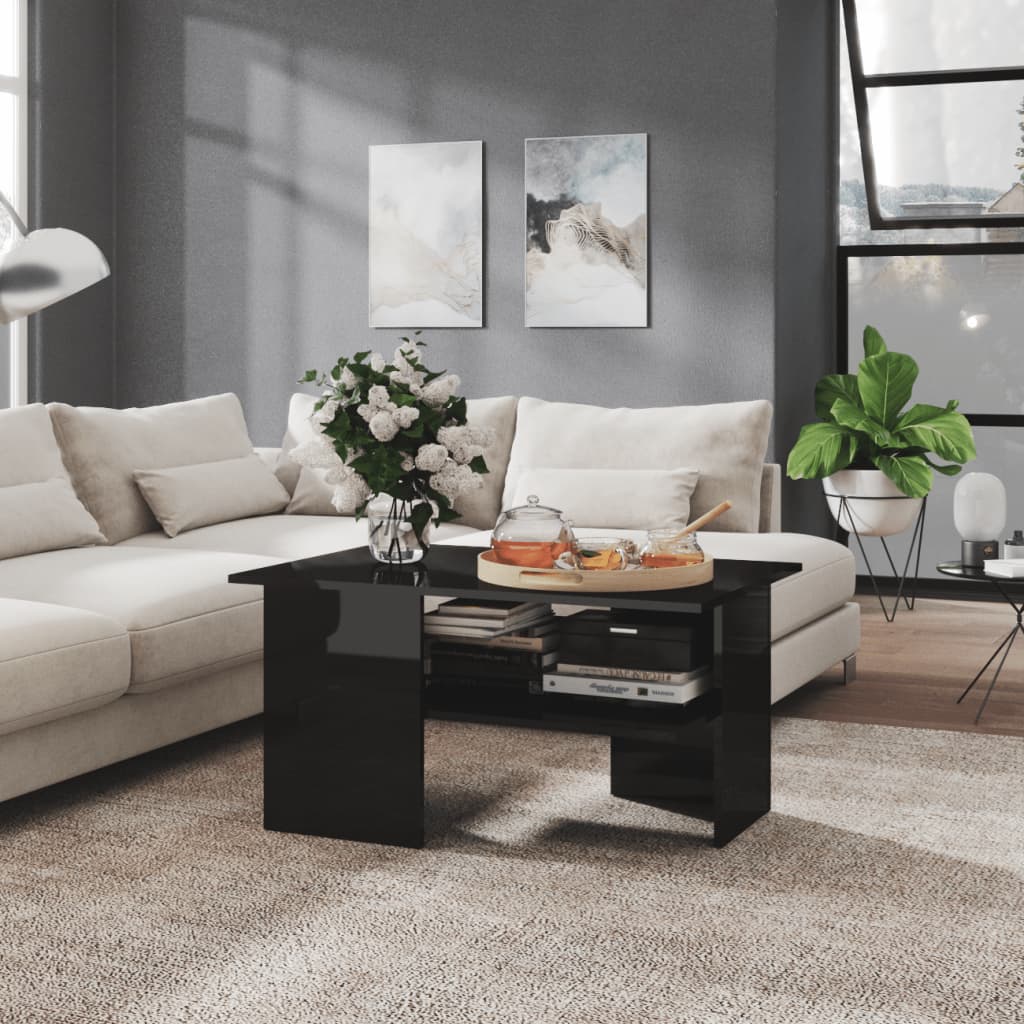 vidaXL Soffbord svart högglans 90x60x46,5 cm spånskiva