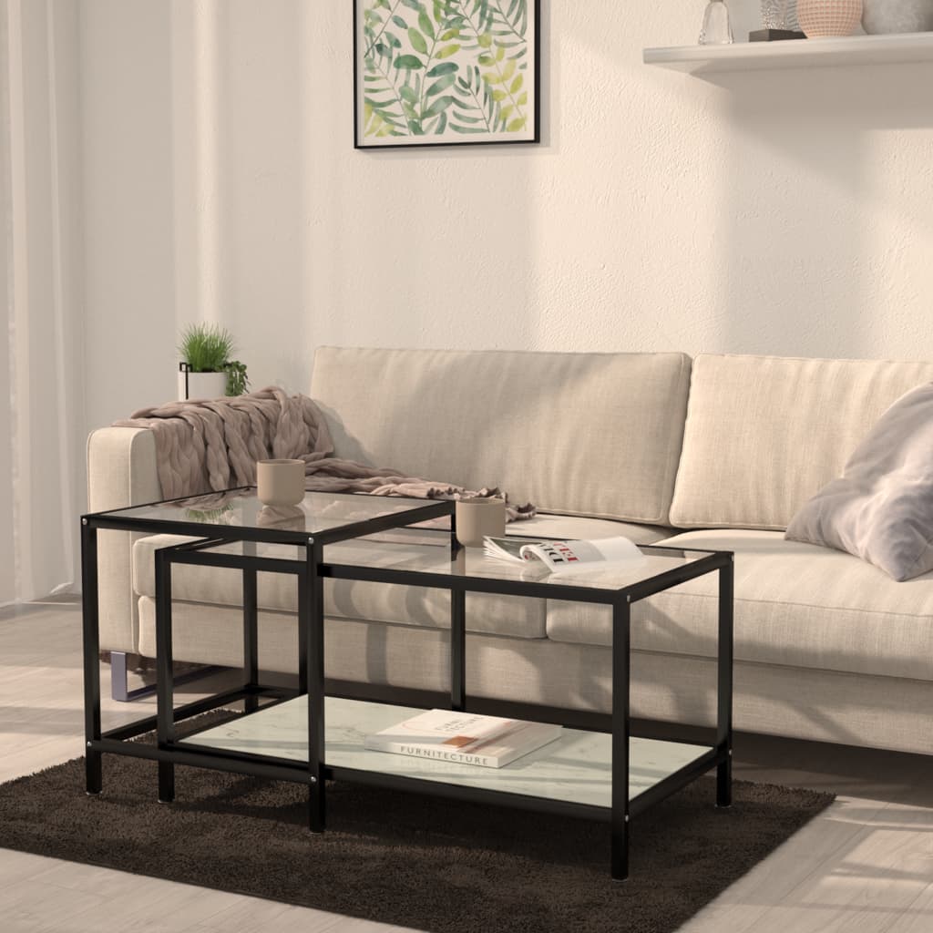 vidaXL Tebord 2 st vit härdat glas