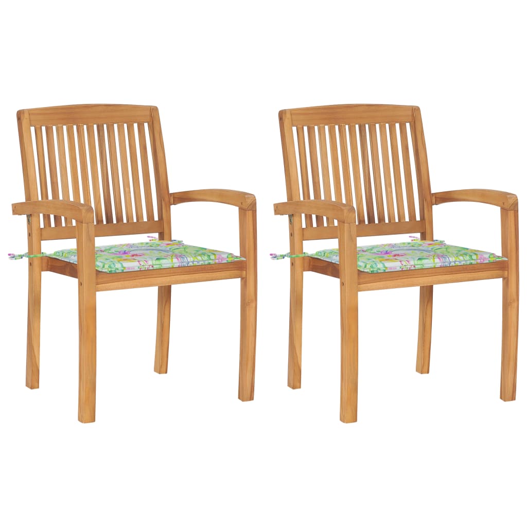 vidaXL Trädgårdsstolar 2 st med dynor bladmönster massiv teak