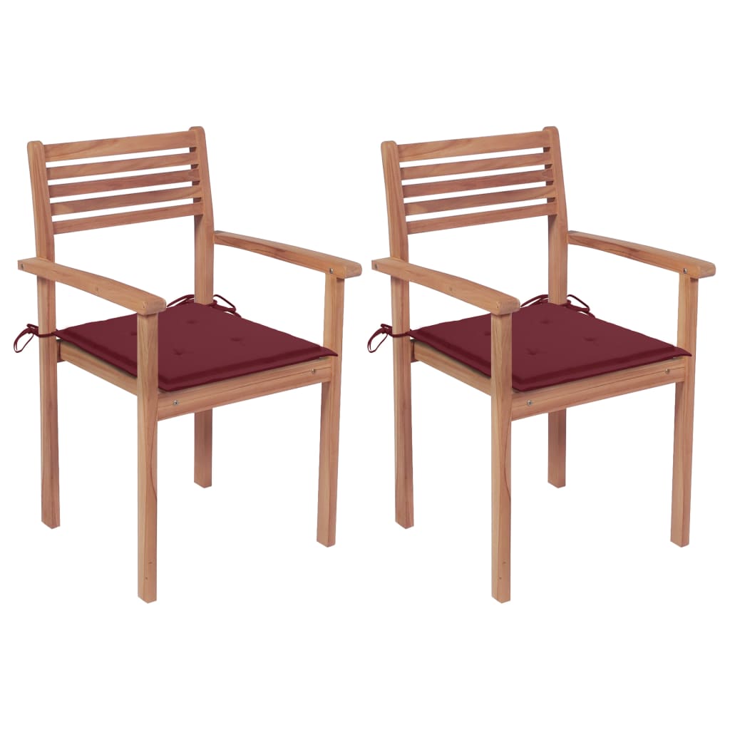 vidaXL Trädgårdsstolar 2 st med vinröda dynor massiv teak