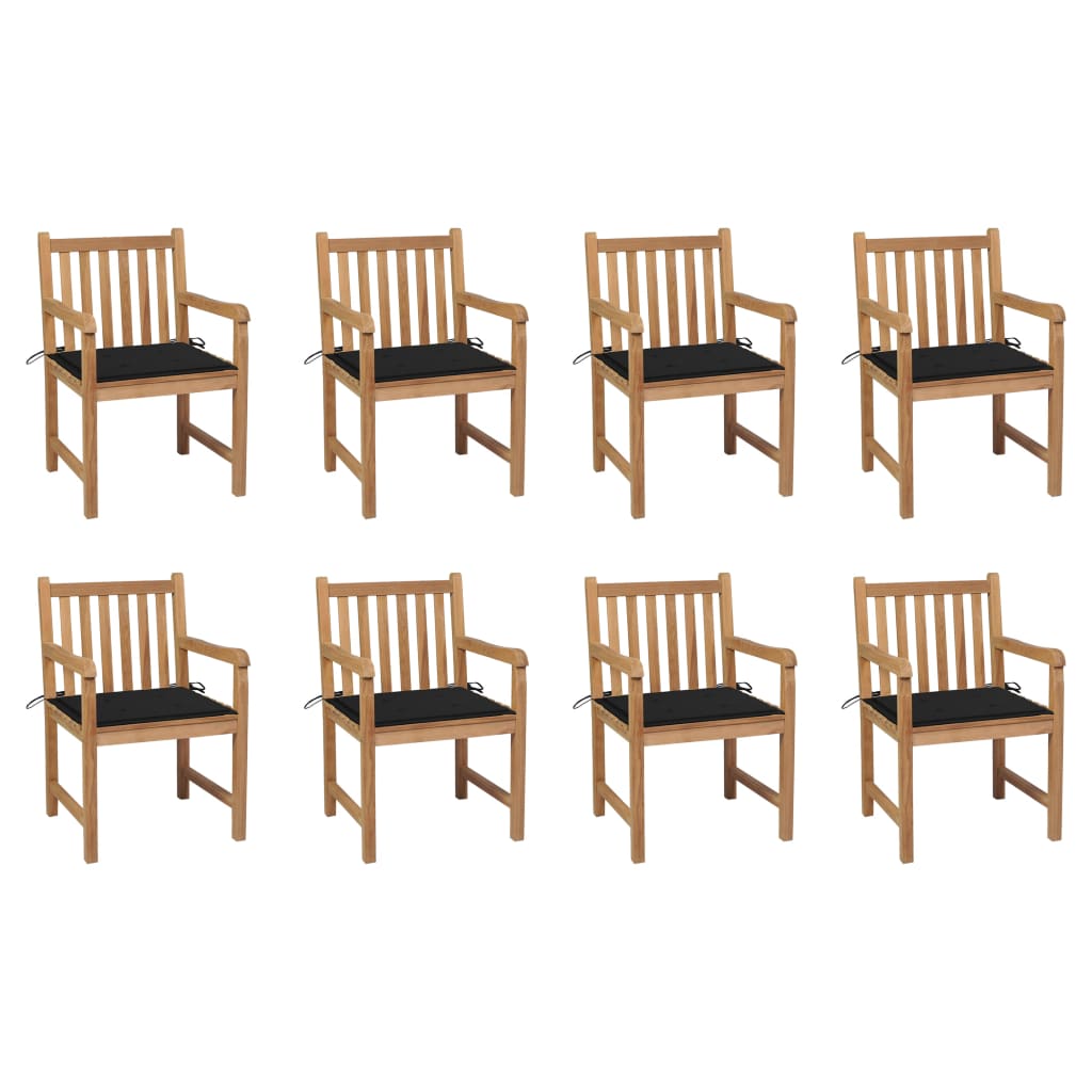 vidaXL Trädgårdsstolar 8 st med svarta dynor massiv teak