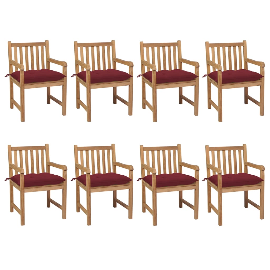 vidaXL Trädgårdsstolar 8 st med vinröda dynor massiv teak