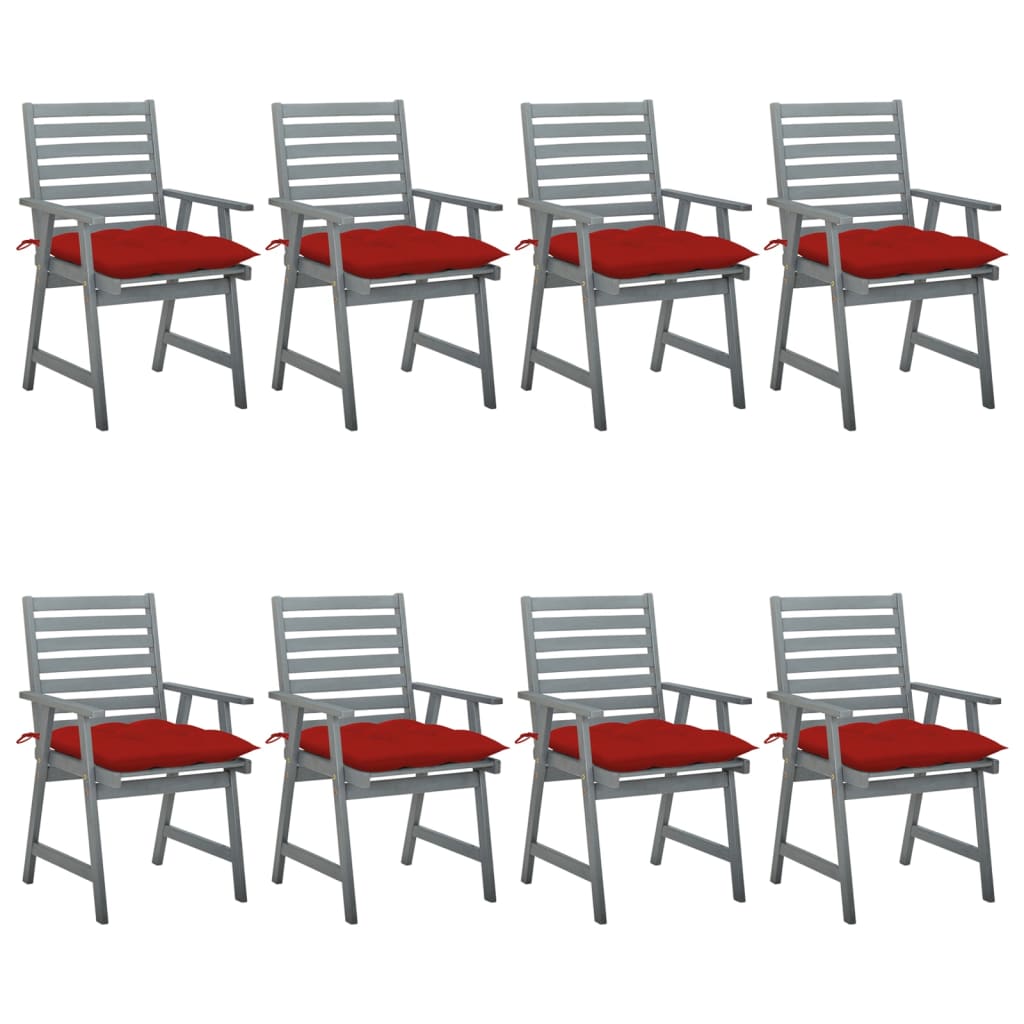 vidaXL Trädgårdsstolar med dynor 8 st massivt akaciaträ
